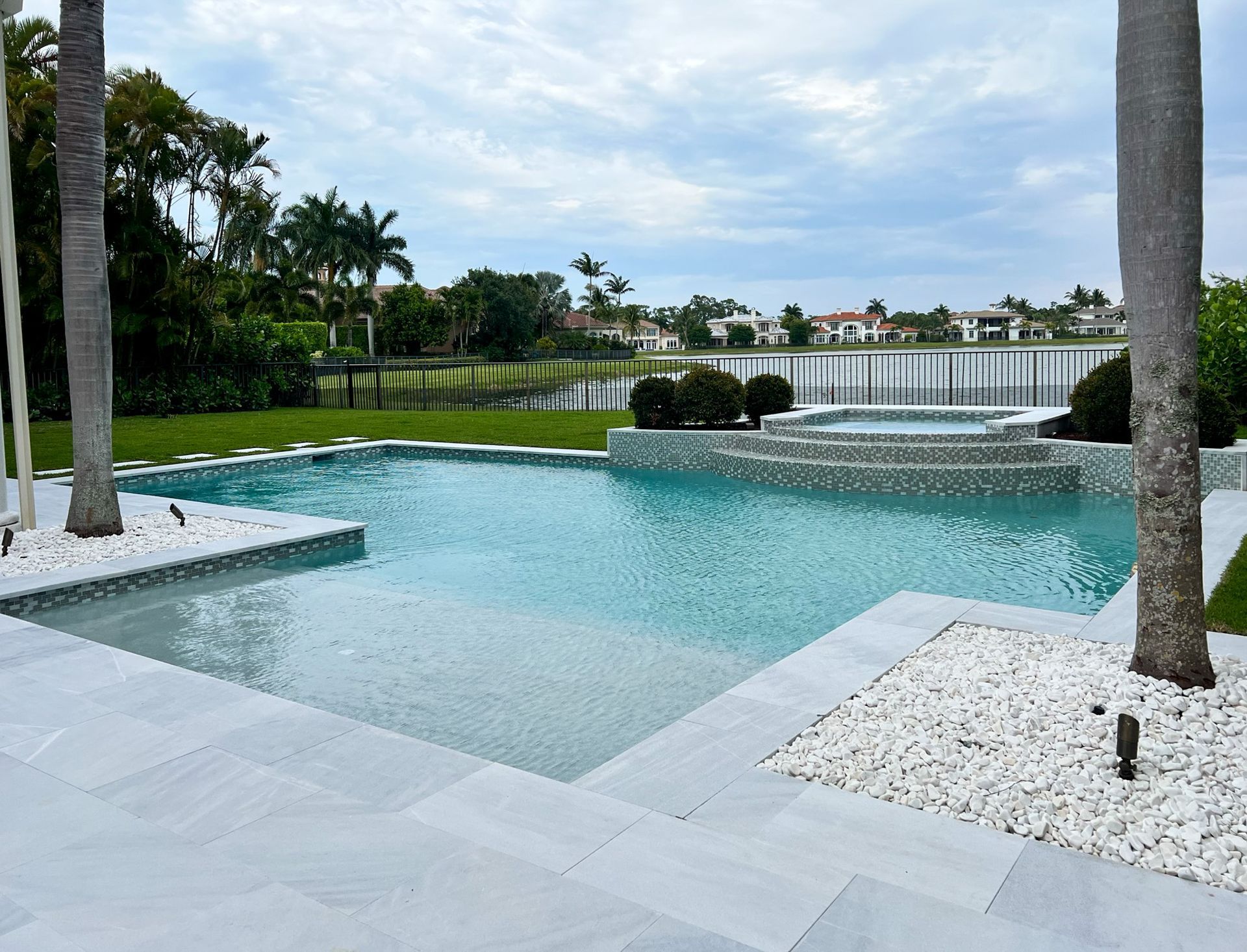 This 6,246-square-foot Mediterranean-style home built in 2007 is located in the Mirasol Community of Palm Beach Gardens and was ready for a transformation both inside and out. We gave the exterior a complete refresh, elevating its curb appeal and crafting a chic outdoor living area featuring a modern pool.